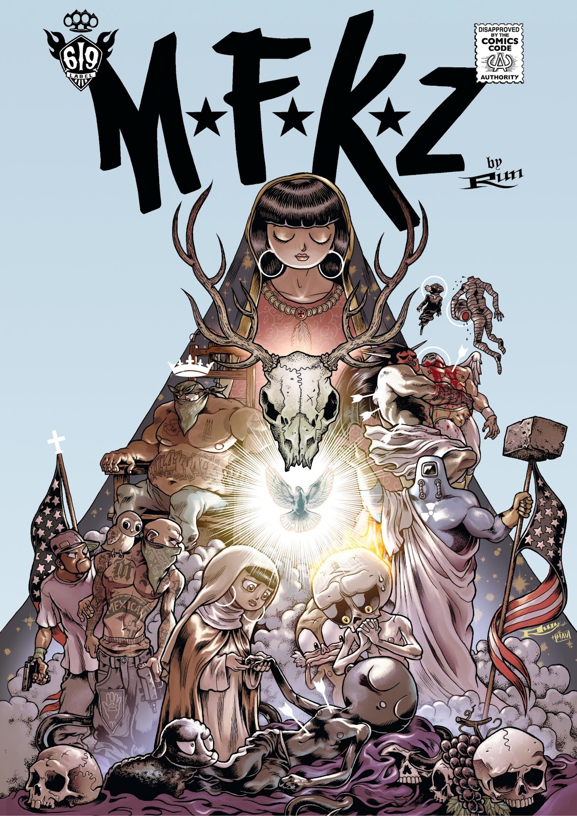 Angelino, a young loser like thousands of others in Dark Meat City, lives in a squalid hotel room in the Latin Quarter of Rios Rosas with his buddy Vinz. His days are spent between monotonous channel-surfing and working at the occasional odd job. Luckily, the Mexican wrestling matches he loves so much are on TV. From dead-end jobs to metaphysical discussions under starry skies with his buddy, his life slowly ticks by, until a seemingly banal scooter accident changes everything. Angelino suddenly finds himself in the middle of a hurricane of unimaginable trouble, involving heavily-armed men in black, gangs of all kinds, Mexican wrestler vigilantes, and even depraved cosmic entities with shadowy intentions! Written by RUN, Dan Christensen. Art by RUN.